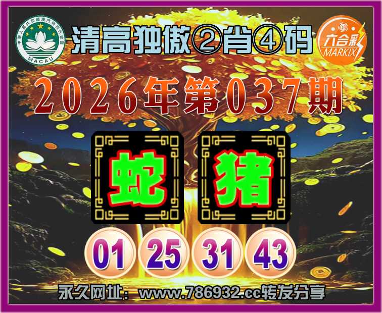 037期:《清高独傲》 🎯②肖④码🎯【蛇】【01.25.31.43】开:猪43