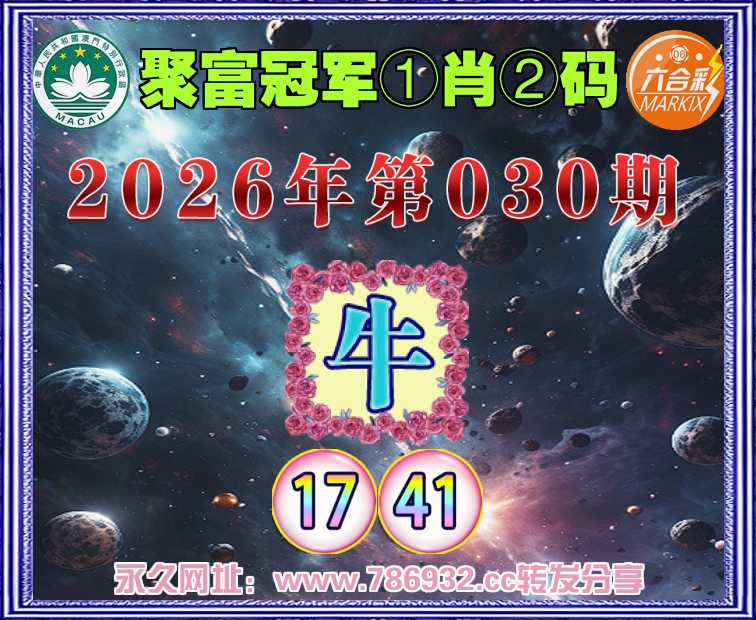 030期: 🥓『聚富冠军』 🥓①肖②码🥓【】【17.41】开:牛41