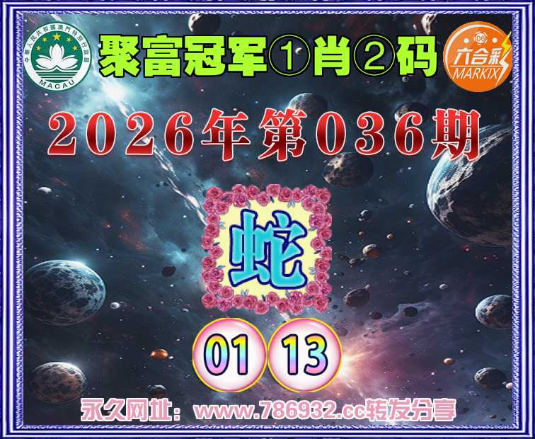 036期: 🥓『聚富冠军』 🥓①肖②码🥓【】【01.13】开:蛇01